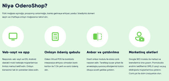 Oderonun təklif etdiyi Onlayn ödəniş qəbulu xidmətinə aşağıdakılar daxildir: