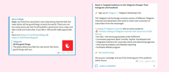 Telegramda reklamlarınızı yerləşdirə biləcəyiniz bir çox tanınmış kanallar mövcuddur. Bu kanalların hər biri müxtəlif mövzular və hədəf auditoriyalara xidmət edir, beləliklə reklamlarınız məhz sizin biznesiniz üçün uyğun kütləyə çatdırılır.